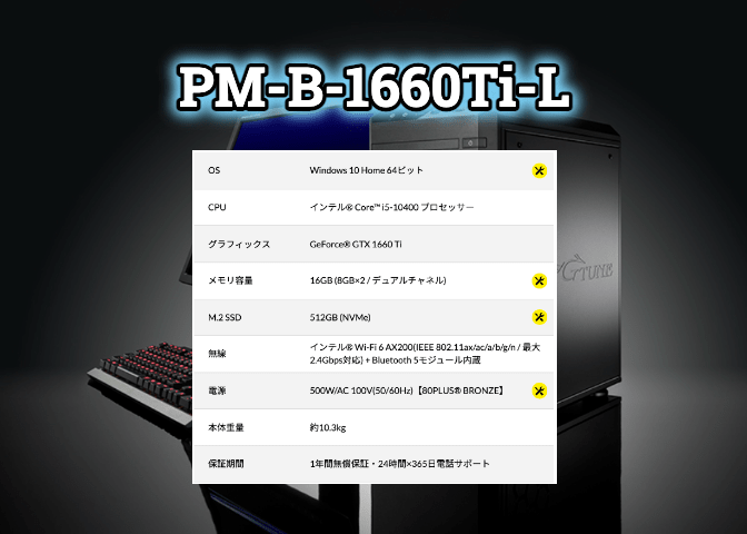 この記事では、そんなマウスコンピューター(mouse)のG-Tune「PM-B-1660Ti」について解説します。