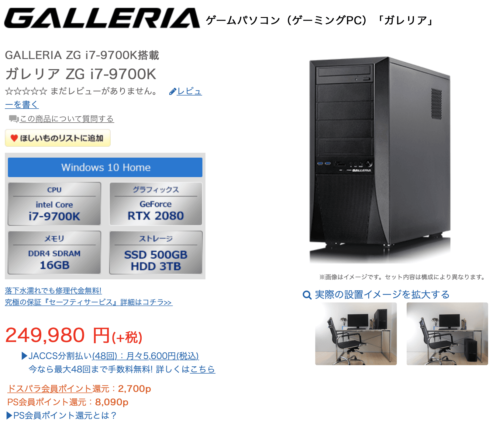 売れ筋構成!ゲーミングPCはドスパラ「GALLERIA ZA7C-R37」がおすすめ!