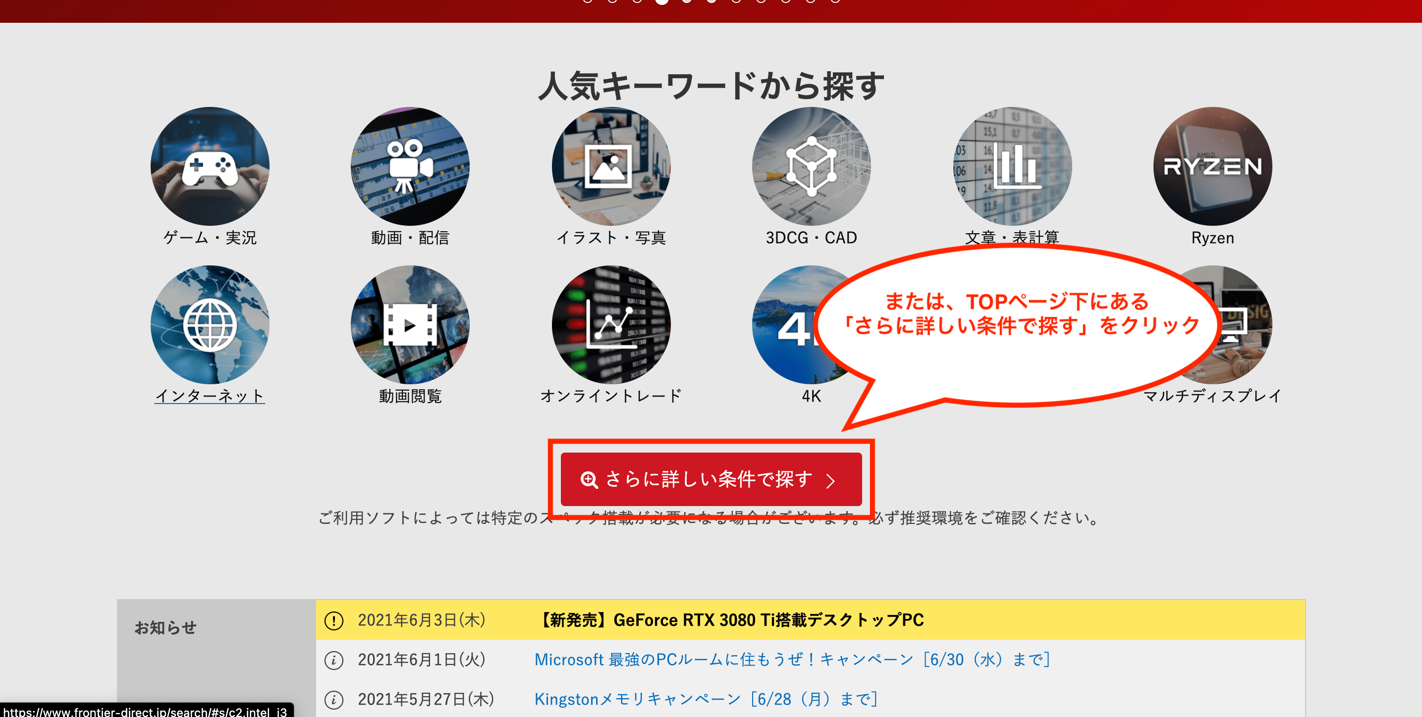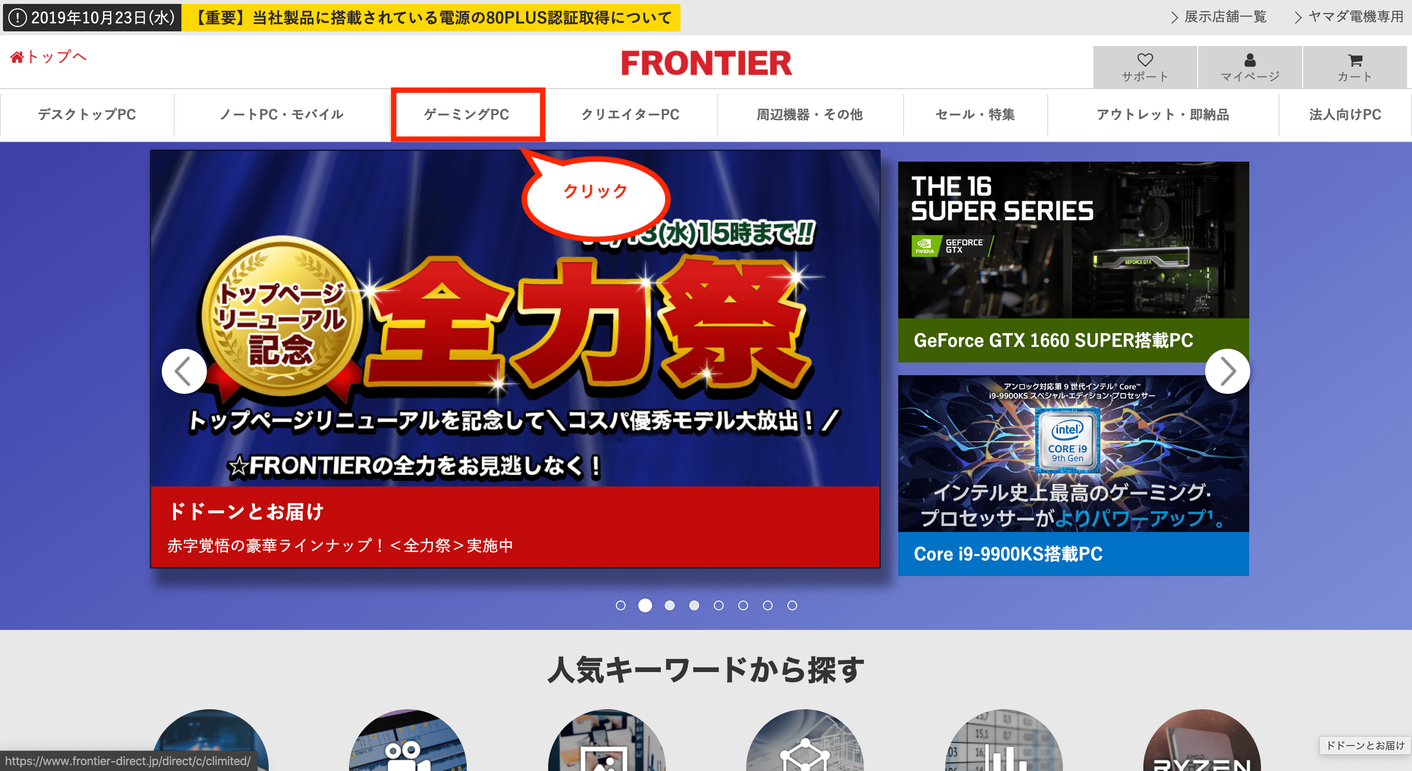 フロンティア(FRONTIER)でゲーミングPCを詳しく見るには?