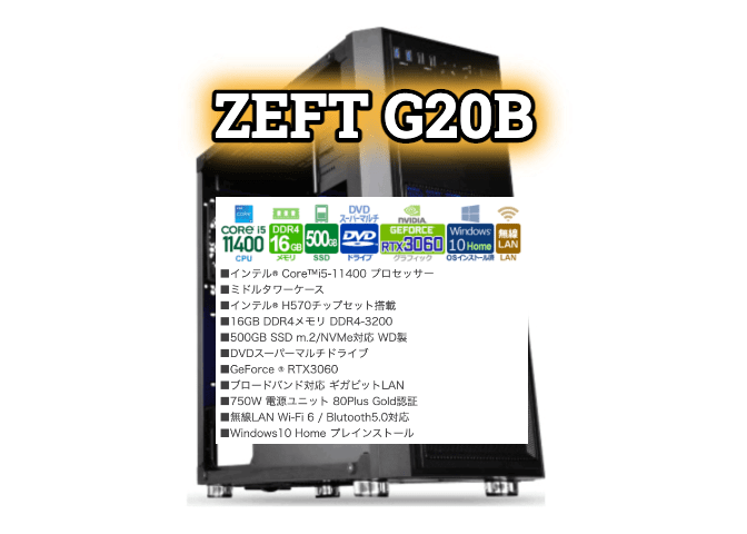 第12世代CPUのCore i7シリーズと、RTXシリーズのローエンドGPUを搭載し、ゲームの種類やグラフィック設定によっては平均144fpsが狙えるスペックです。