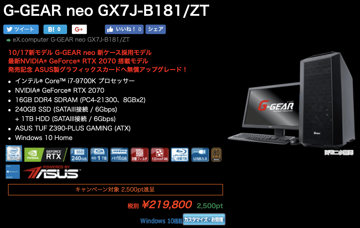 TSUKUMO(ツクモ)は自作PCで評判のパーツを搭載したゲーミングPCが欲しい人や、自分好みにカスタマイズしたい人におすすめですよ!