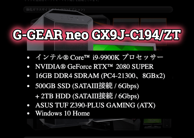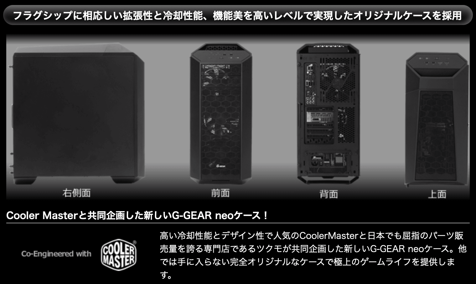 - neoシリーズは拡張性や冷却性が高いPCケースを採用
