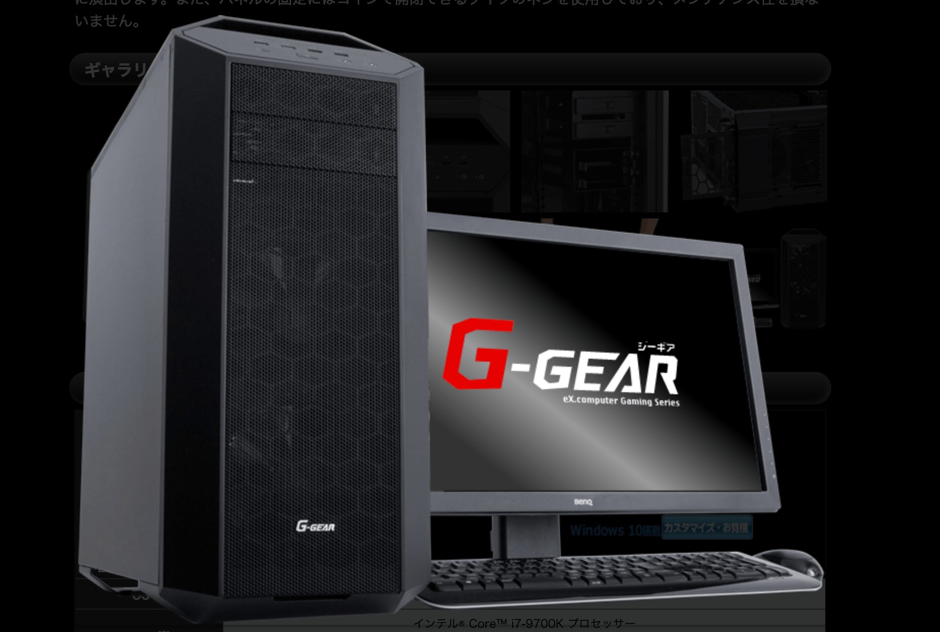 そんなTSUKUMO(ツクモ)のゲーミングPCを公式サイトで確認するには、左のメニューにある「G-GEAR ゲーミングパソコン」をクリックします。