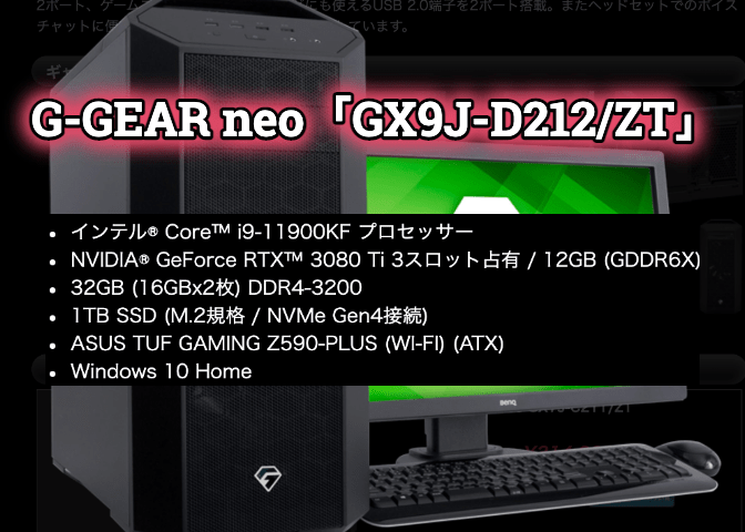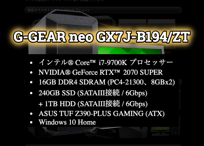 | GPU | GeForce RTX3070Ti(要カスタマイズ) |