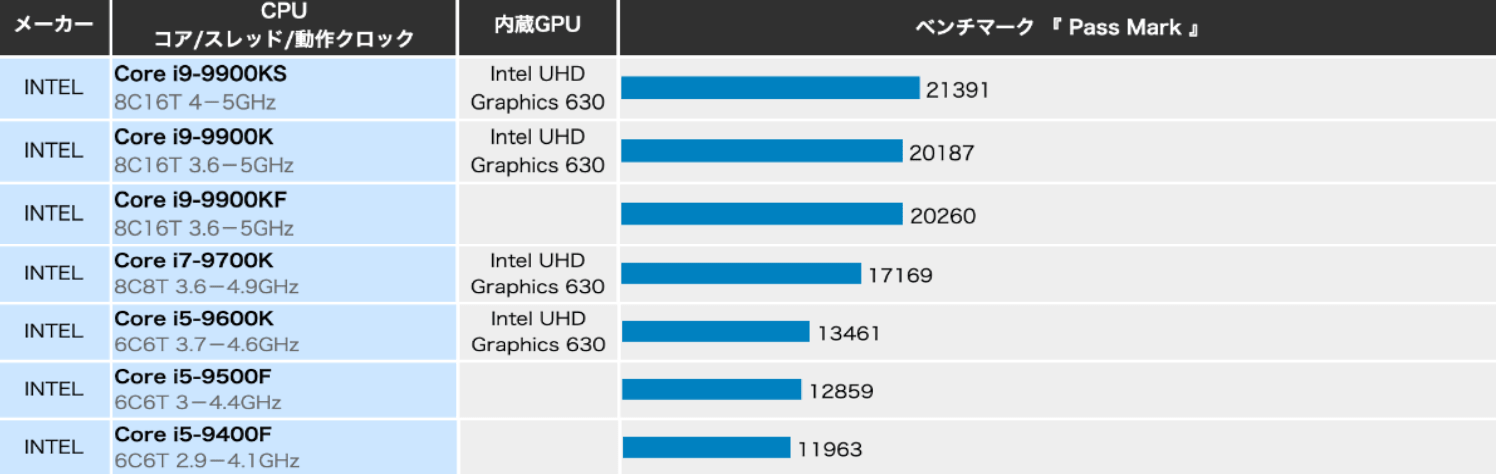 | Intel製CPU(Core iシリーズ) | ||