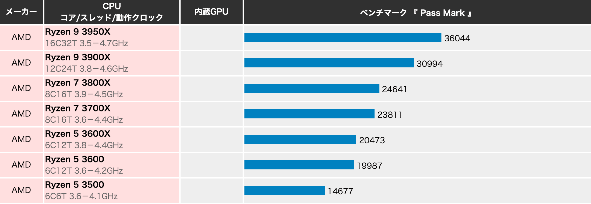 | AMD製CPU(Ryzenシリーズ) | ||