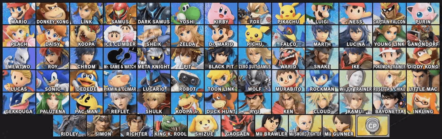 スマブラシリーズとしては第6作目で、過去作品に登場したキャラクター全65体に加え、新規参戦となる「インクリング」や「リドリー」などを含めて70体以上のプレイアンブルキャラクターが登場します。