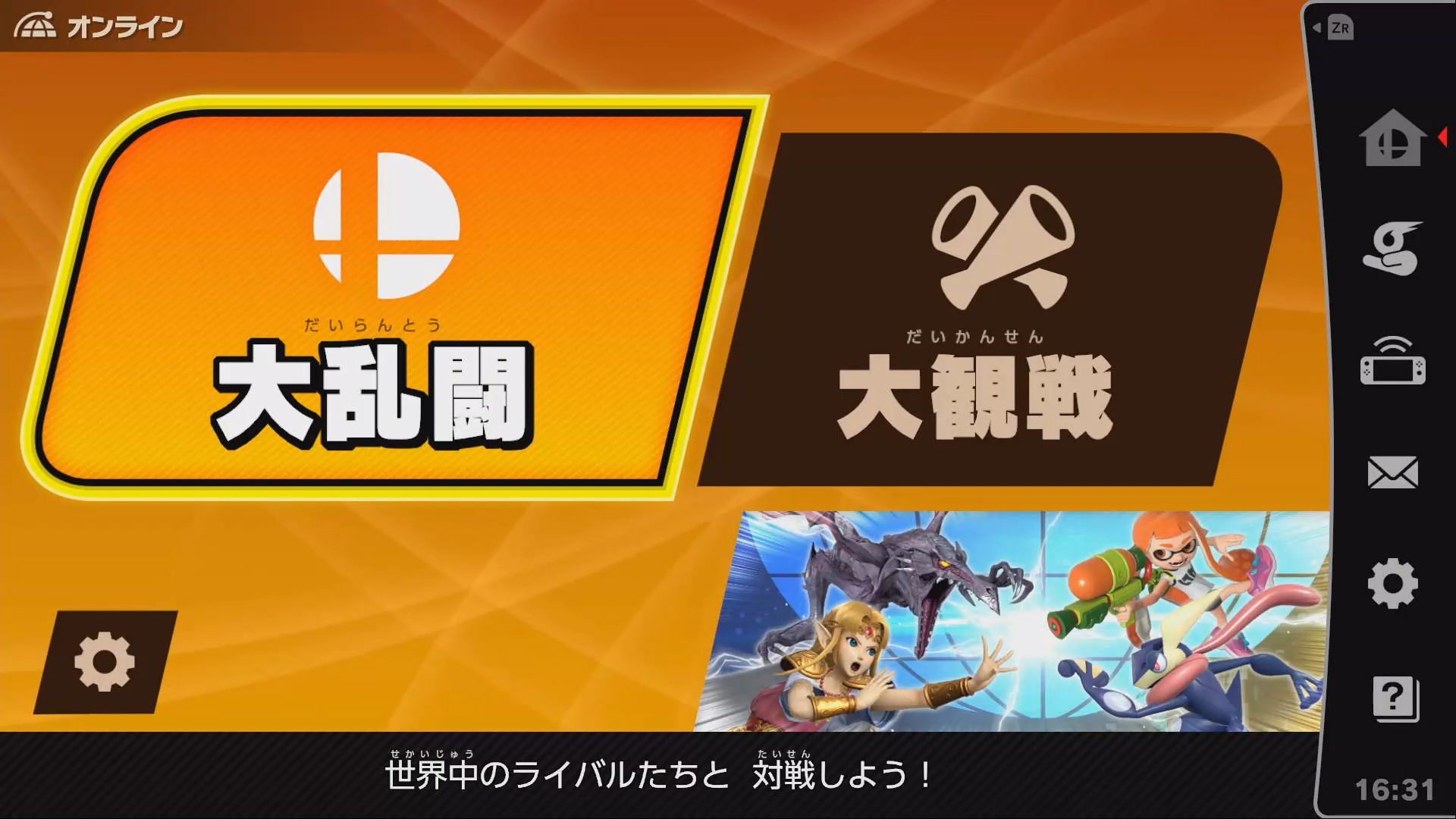 オンラインモードでは、インターネットに接続して最大4人で対戦できる「大乱闘」や、対戦を観戦できる「大観戦」があります。