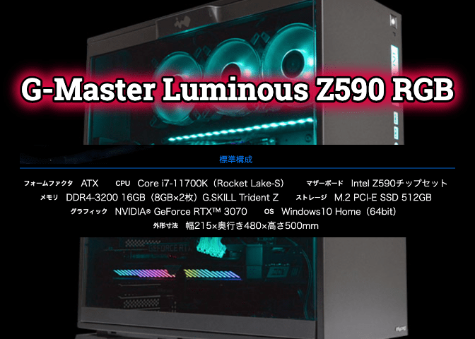 初期構成のGPUは「GeForce RTX3070」ですが、より性能が高い「GeForce RTX3080」以上にカスタマイズ可能です。