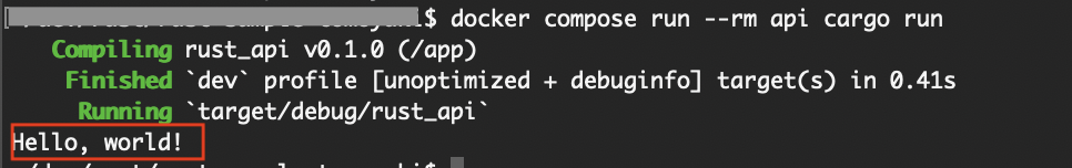 次に以下のコマンドを実行し、「src/main.rs」をコンパイルして実行してみます。