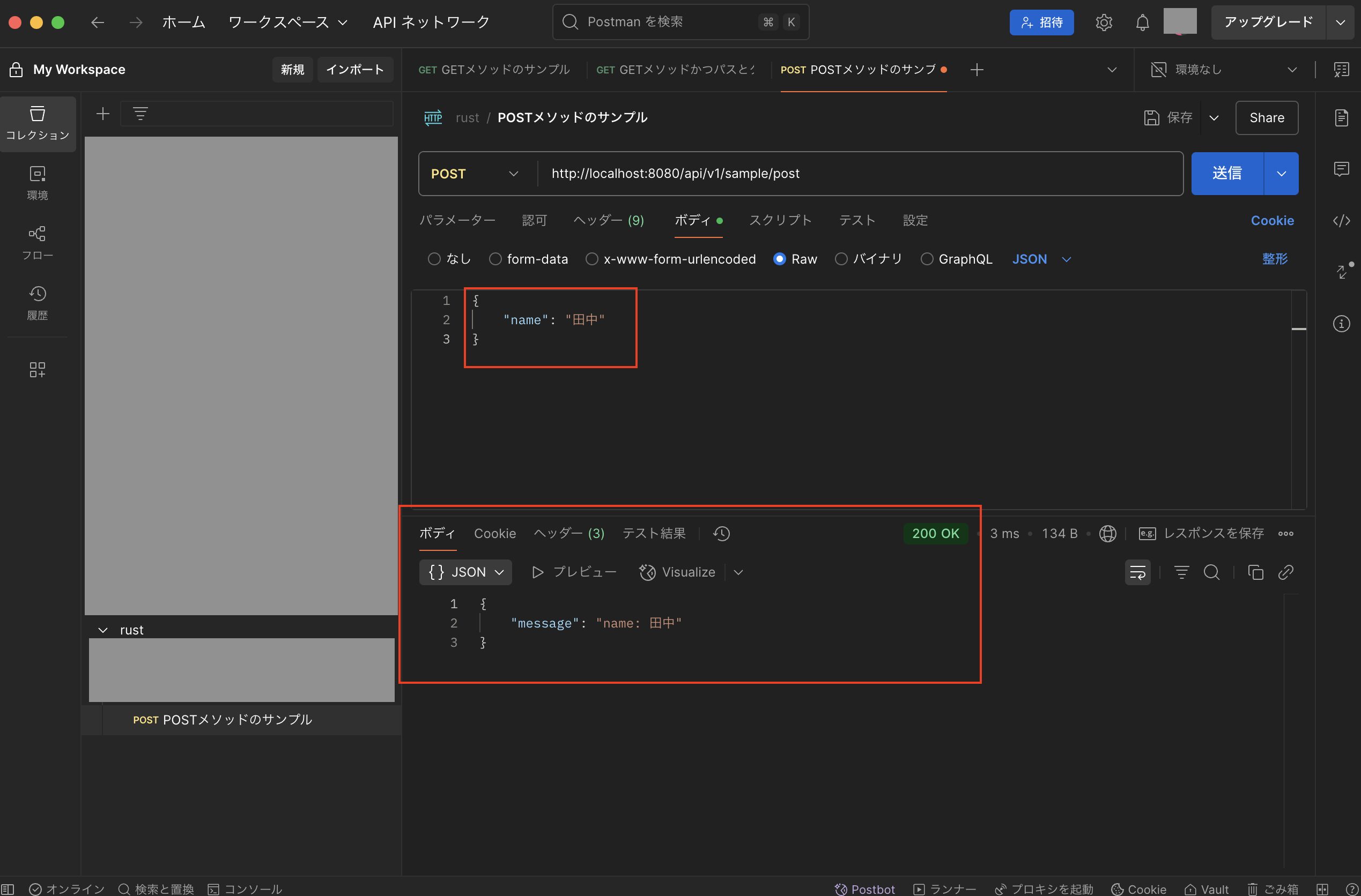 次に3つのAPIをそれぞれ再度実行してみて下さい。修正前と同様にそれぞれ正常終了すればOKです。